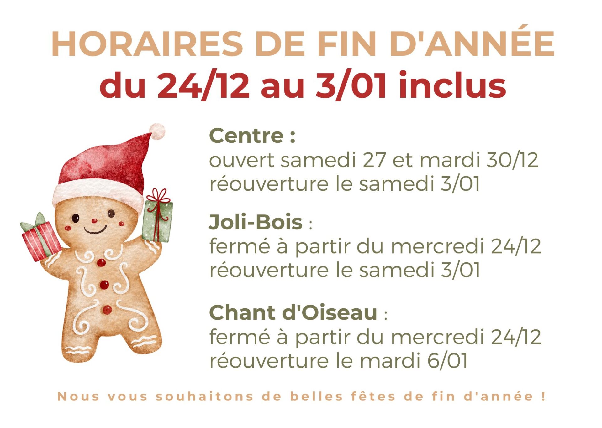 Horaires de fin d'année